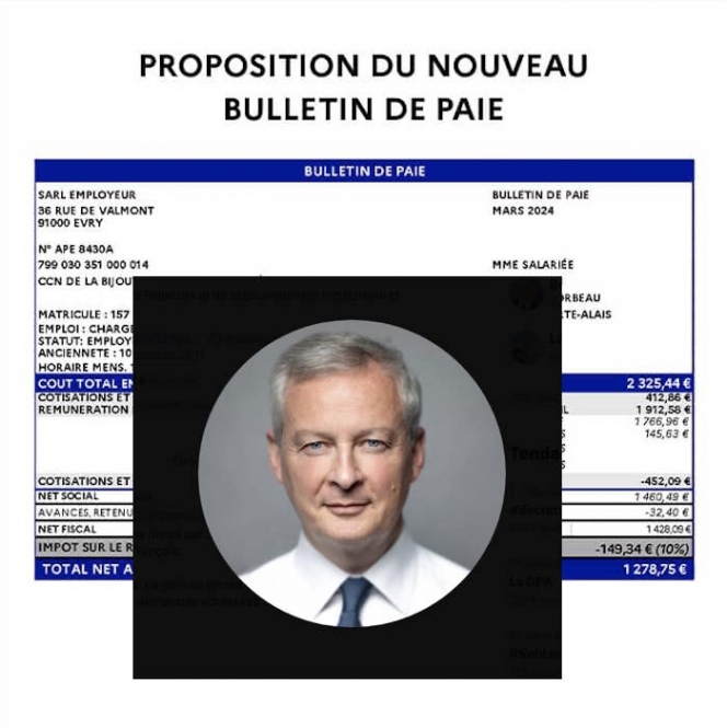 Le ministre de l'Economie, Bruno Le maire, annonce la préparation d'un nouveau modèle de bulletin de salaire, simplifié : une vingtaine de lignes au lieu d'une quarantaine.